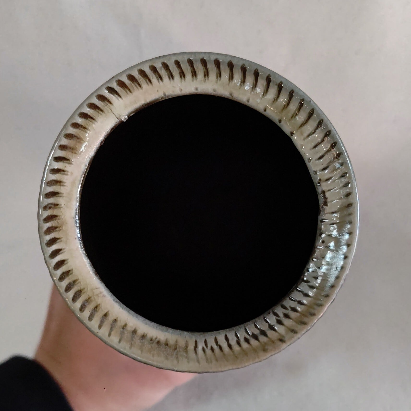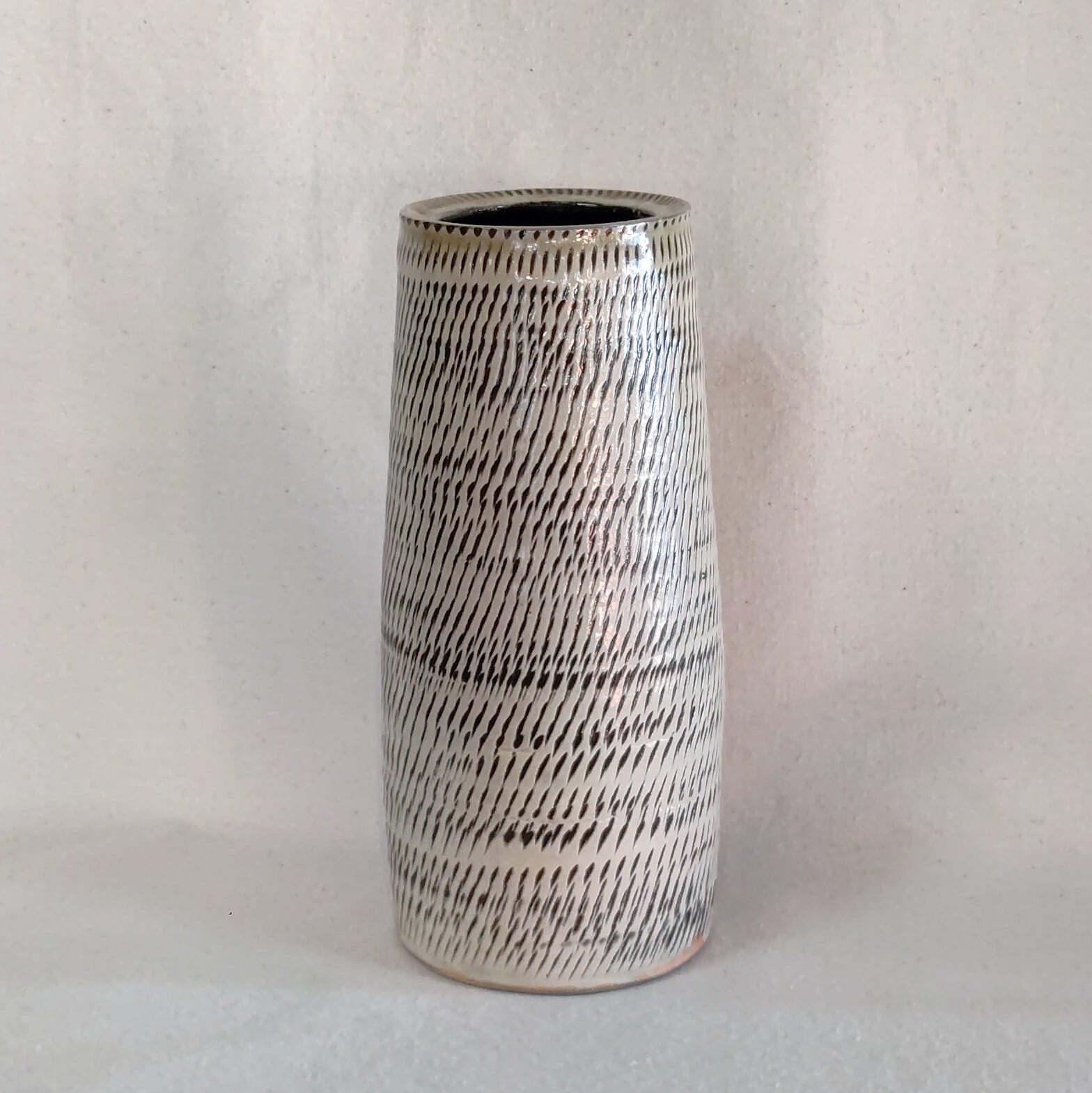 飛び鉋筒花瓶 小鹿田焼