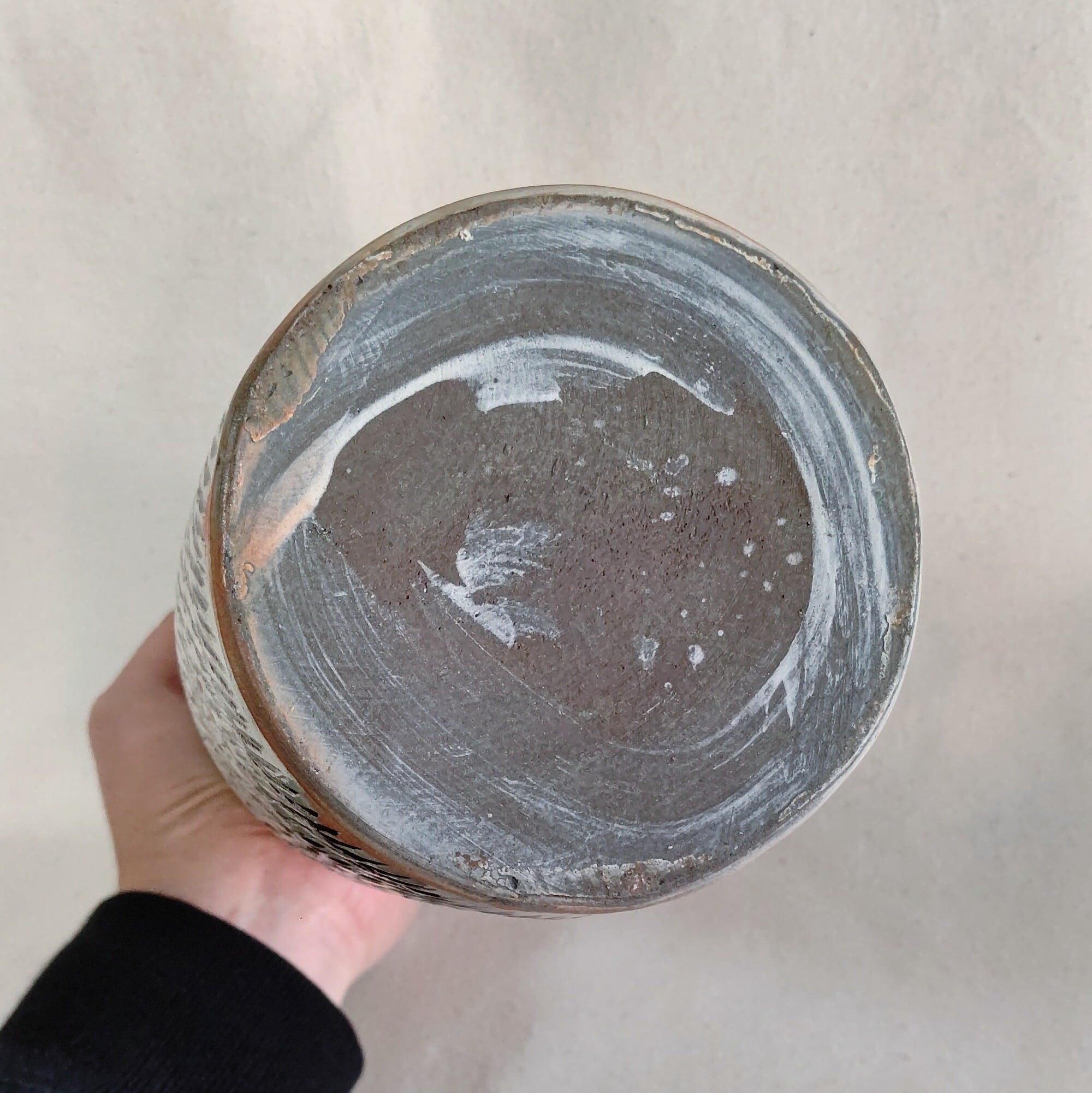小鹿田焼(大分)の古作の筒花瓶になります。
