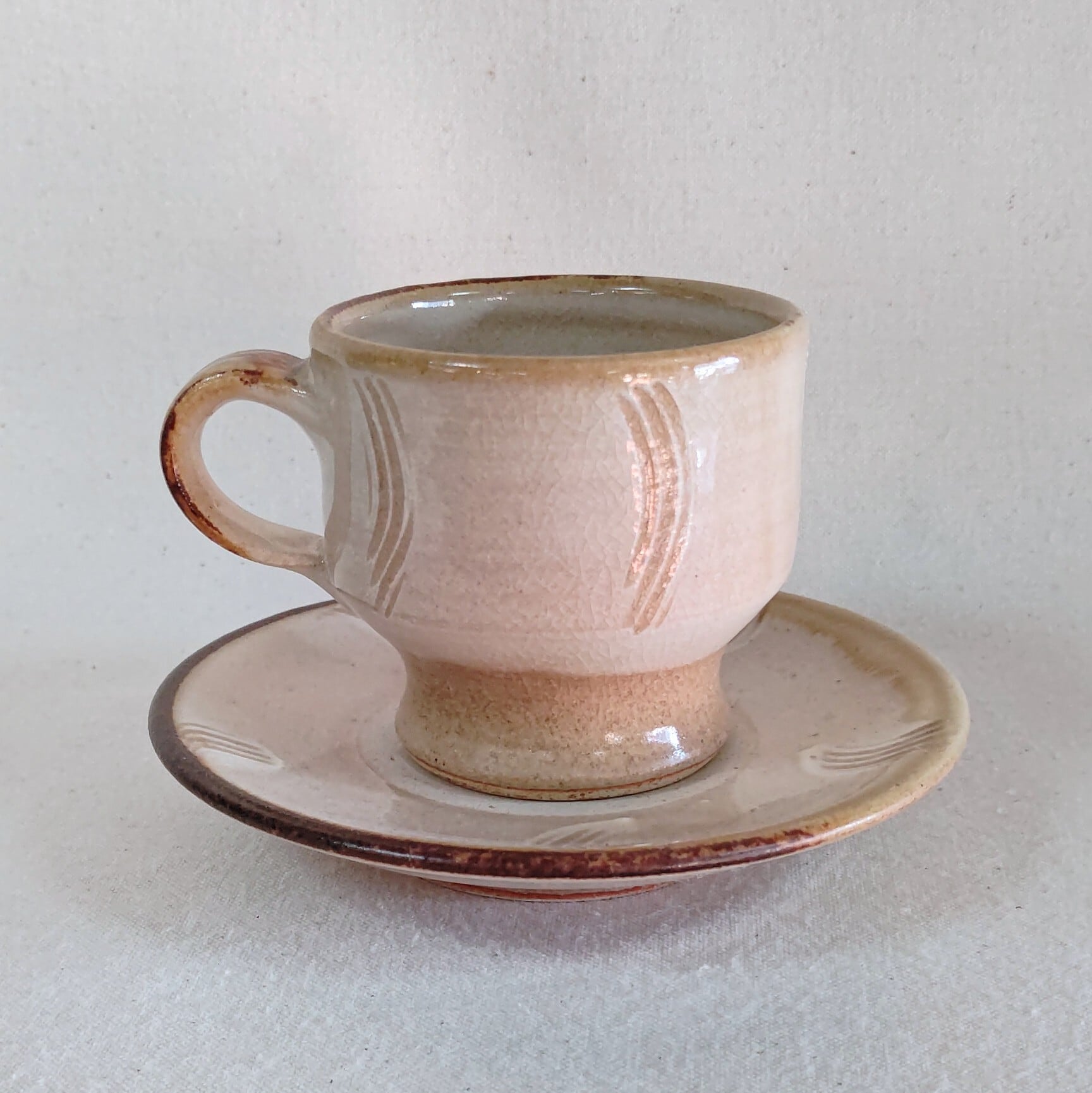 羽島焼(岡山)の古作の珈琲碗皿になります。