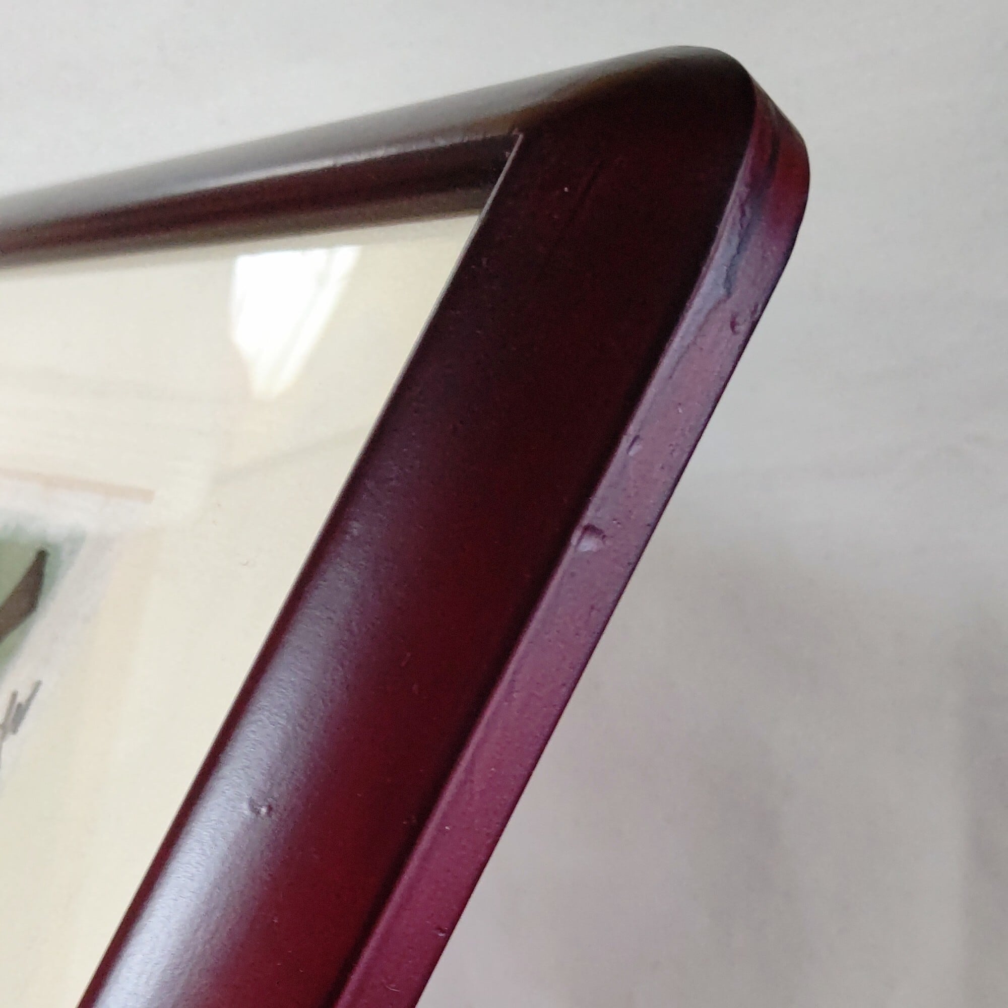 経年によるシミや色褪せ、額に傷などございます。