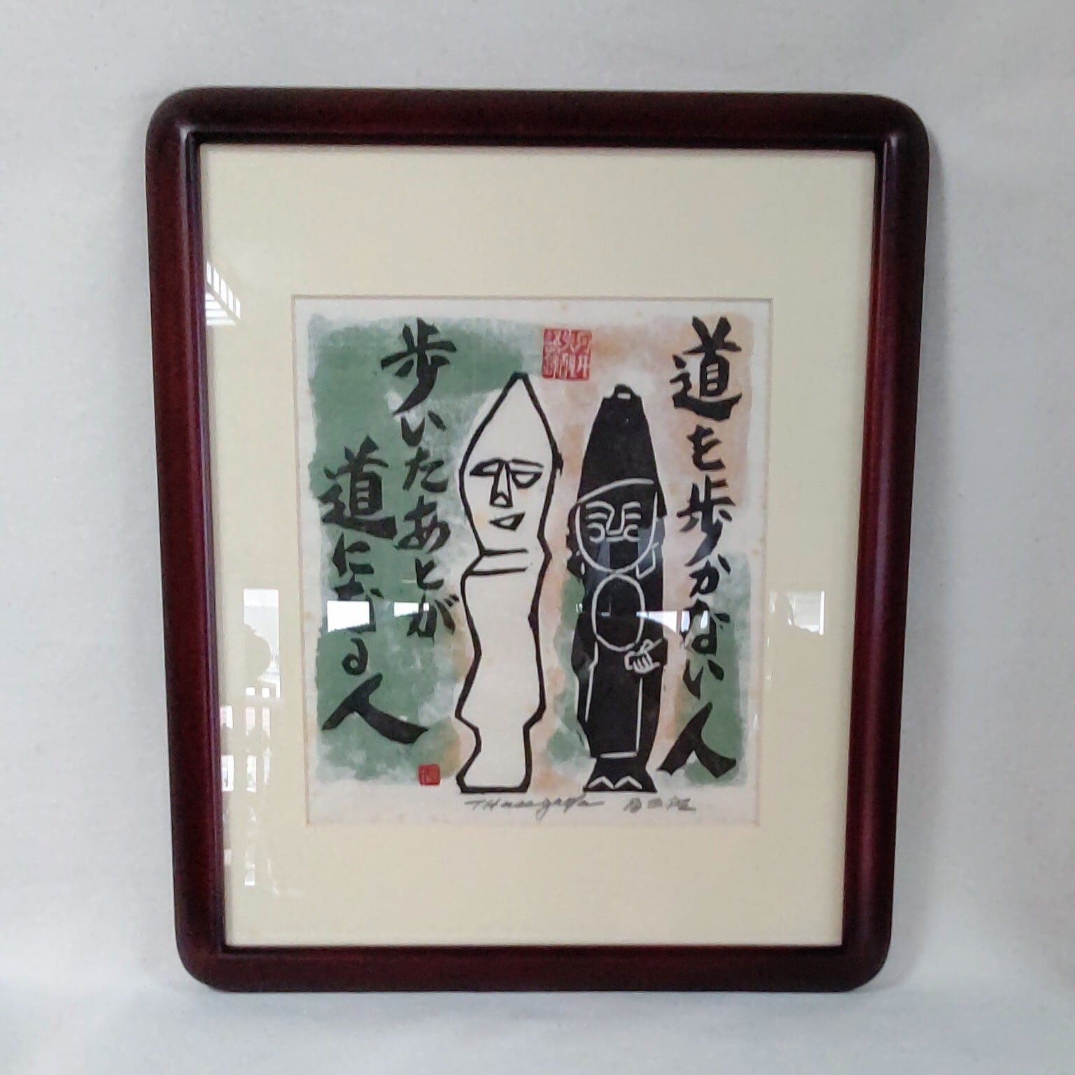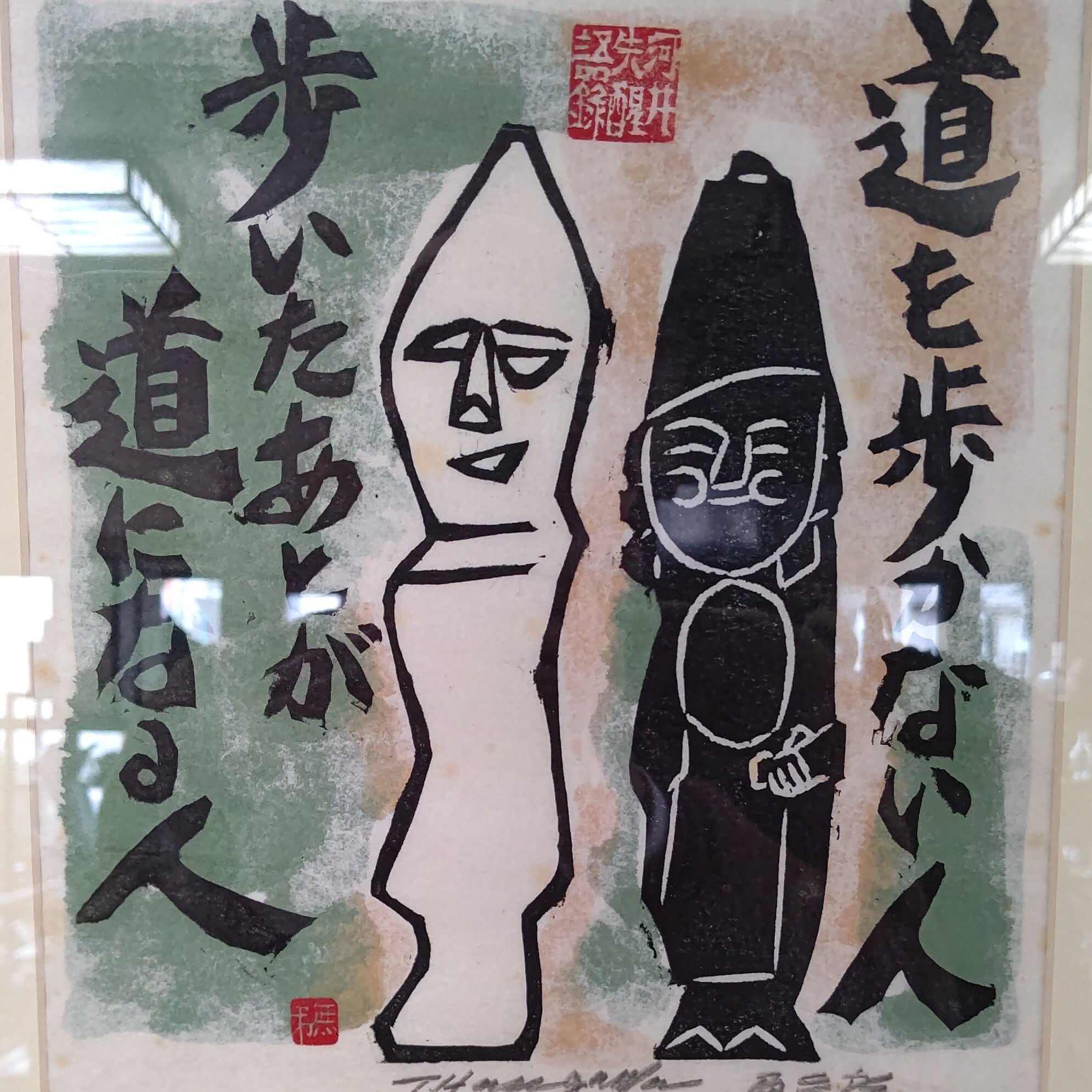 長谷川富三郎さんの板画「道を歩かない人 歩いたあとが道になる人」河井寛次郎 語録になります。