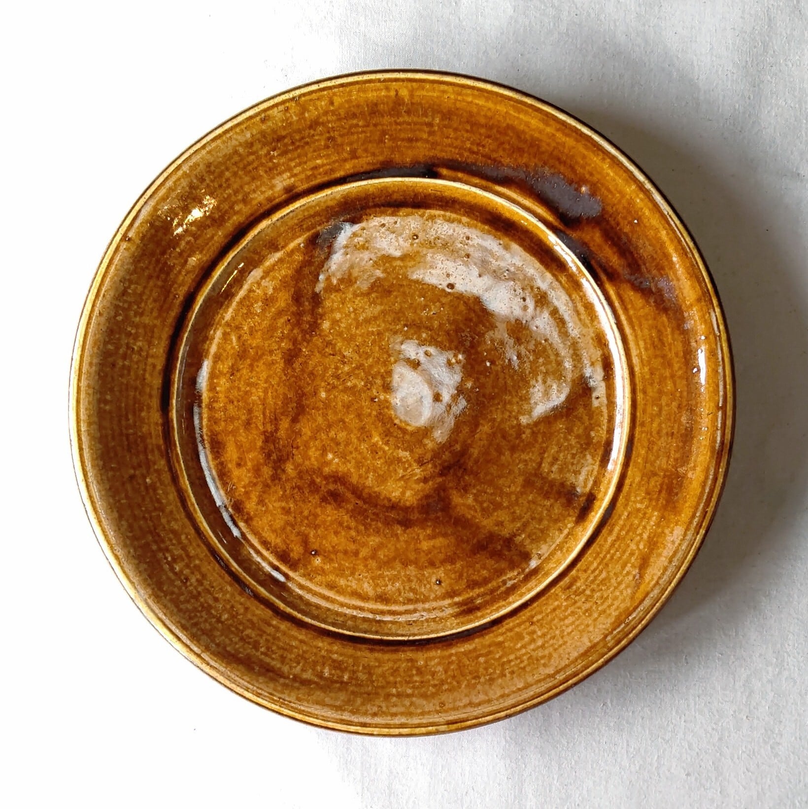 飴釉尺1寸縁付き皿 出西窯