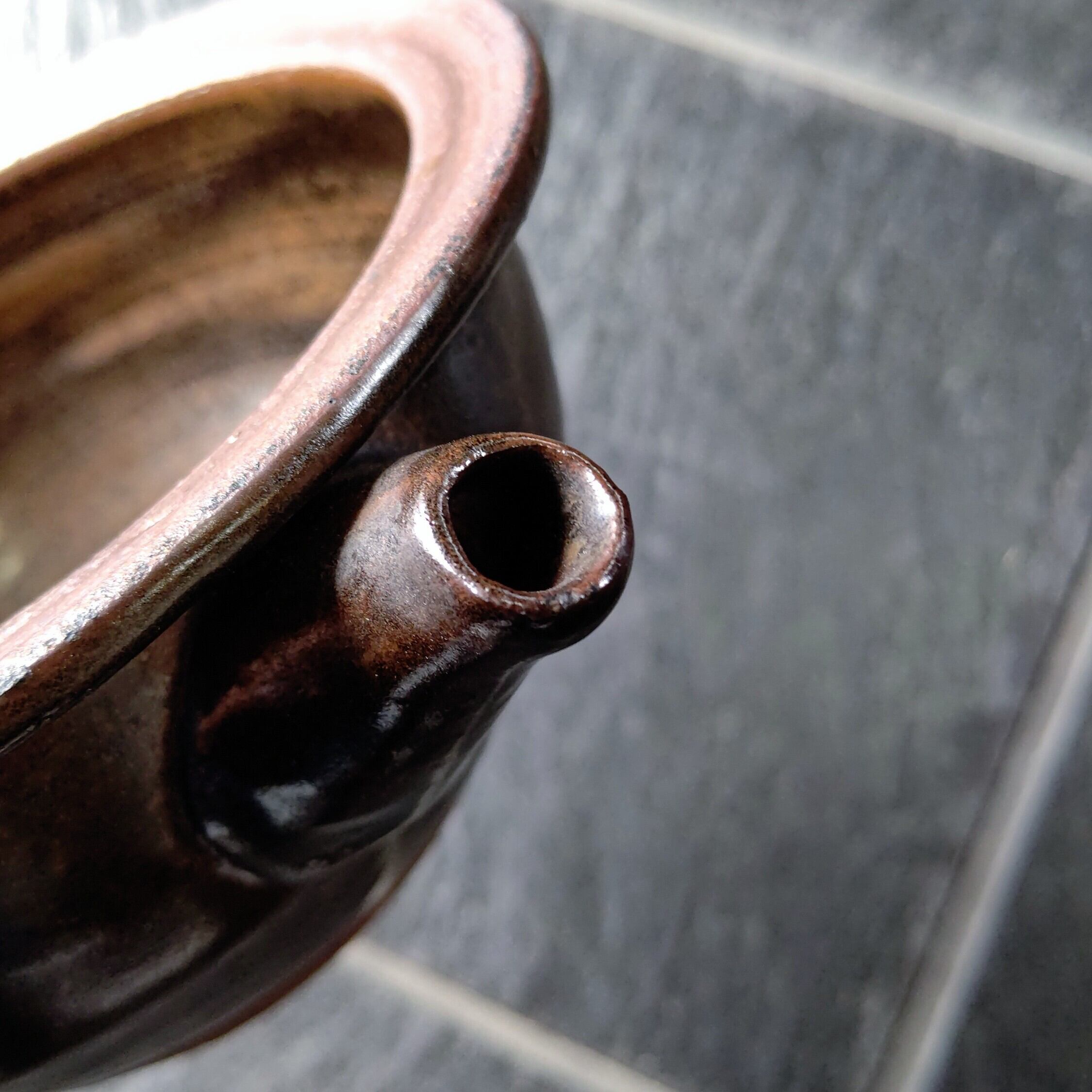 苗代川焼(鹿児島)の古作の片口になります。