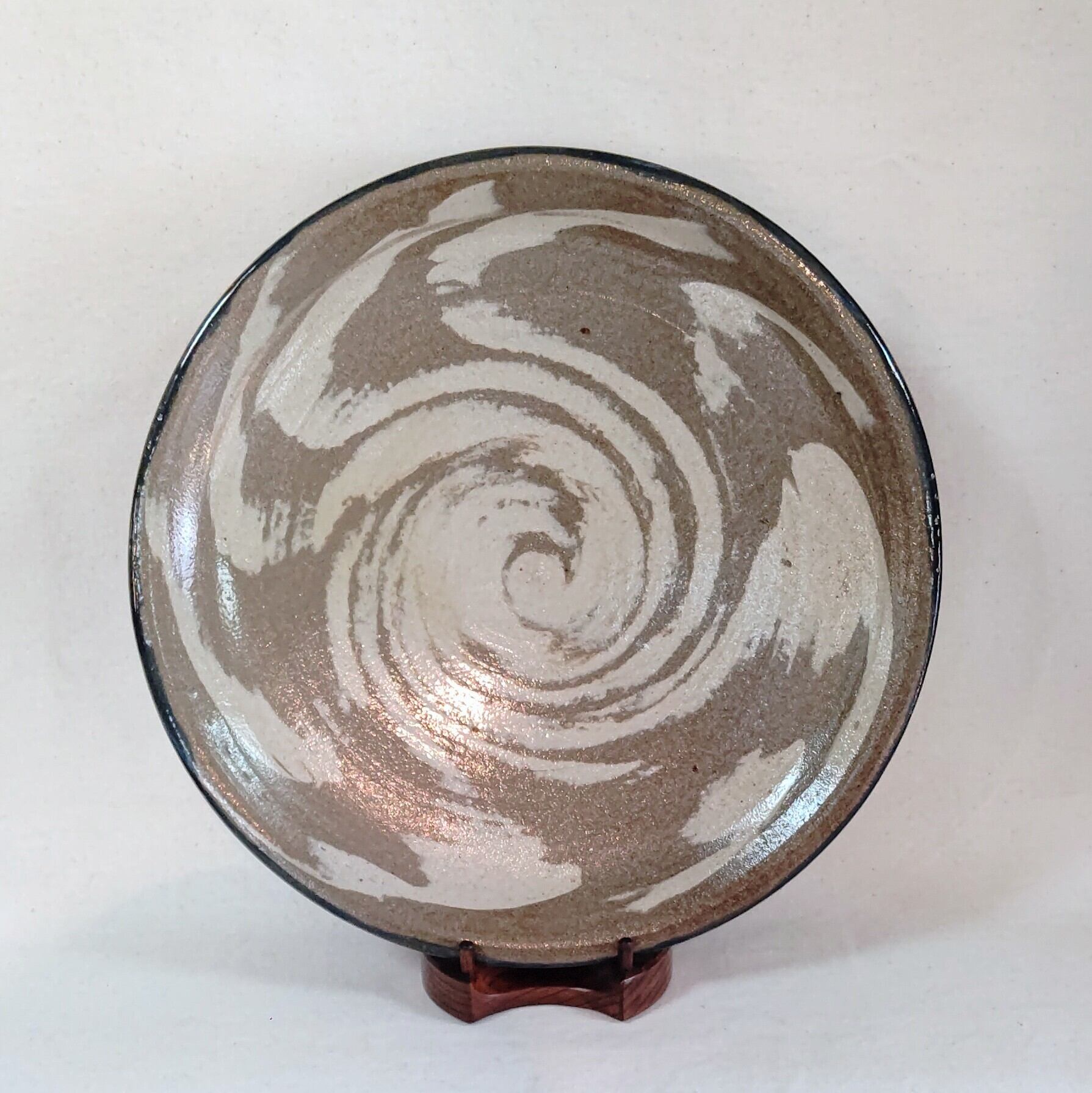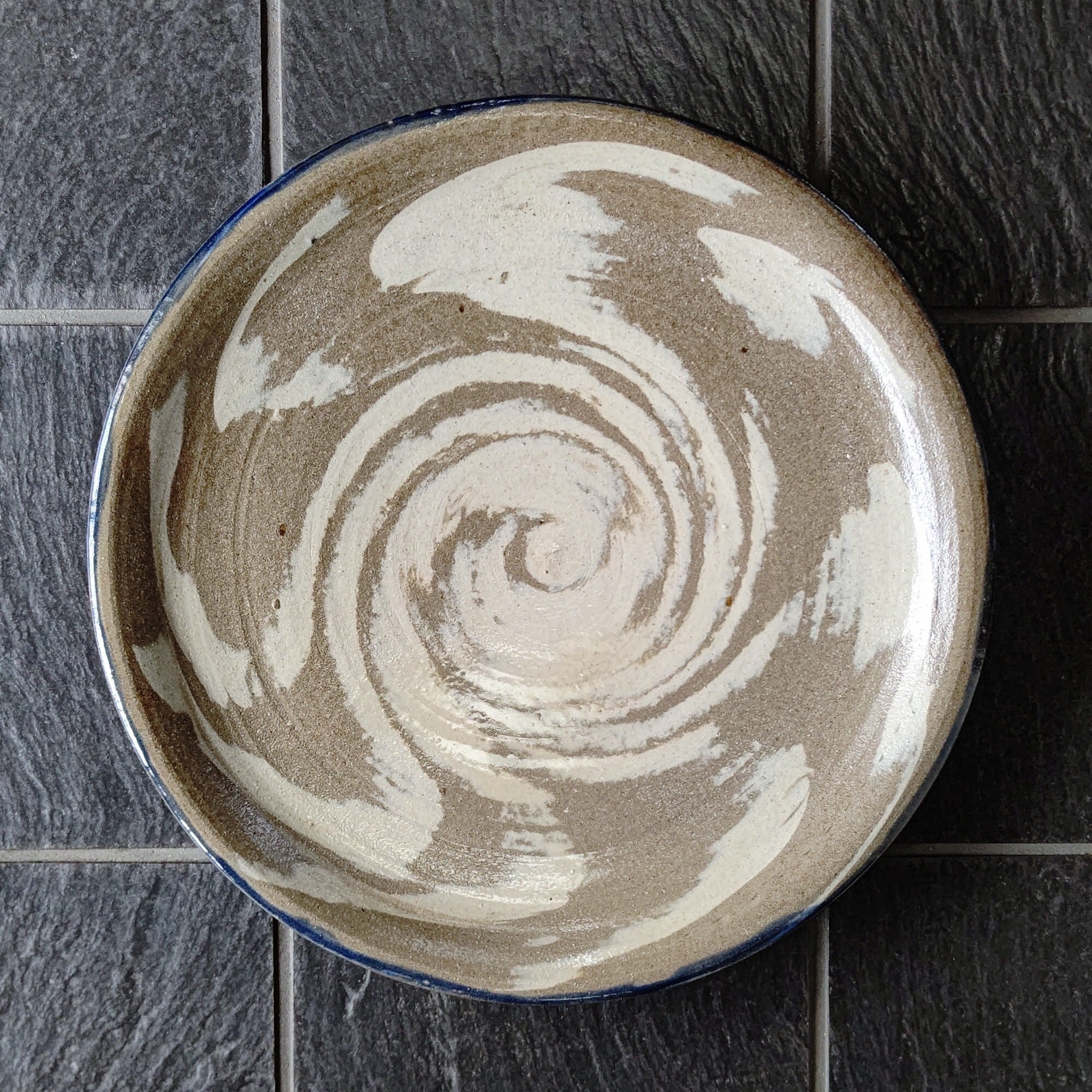 古物で手に入れた壺屋焼 小橋川清正さんの練込皿になります。