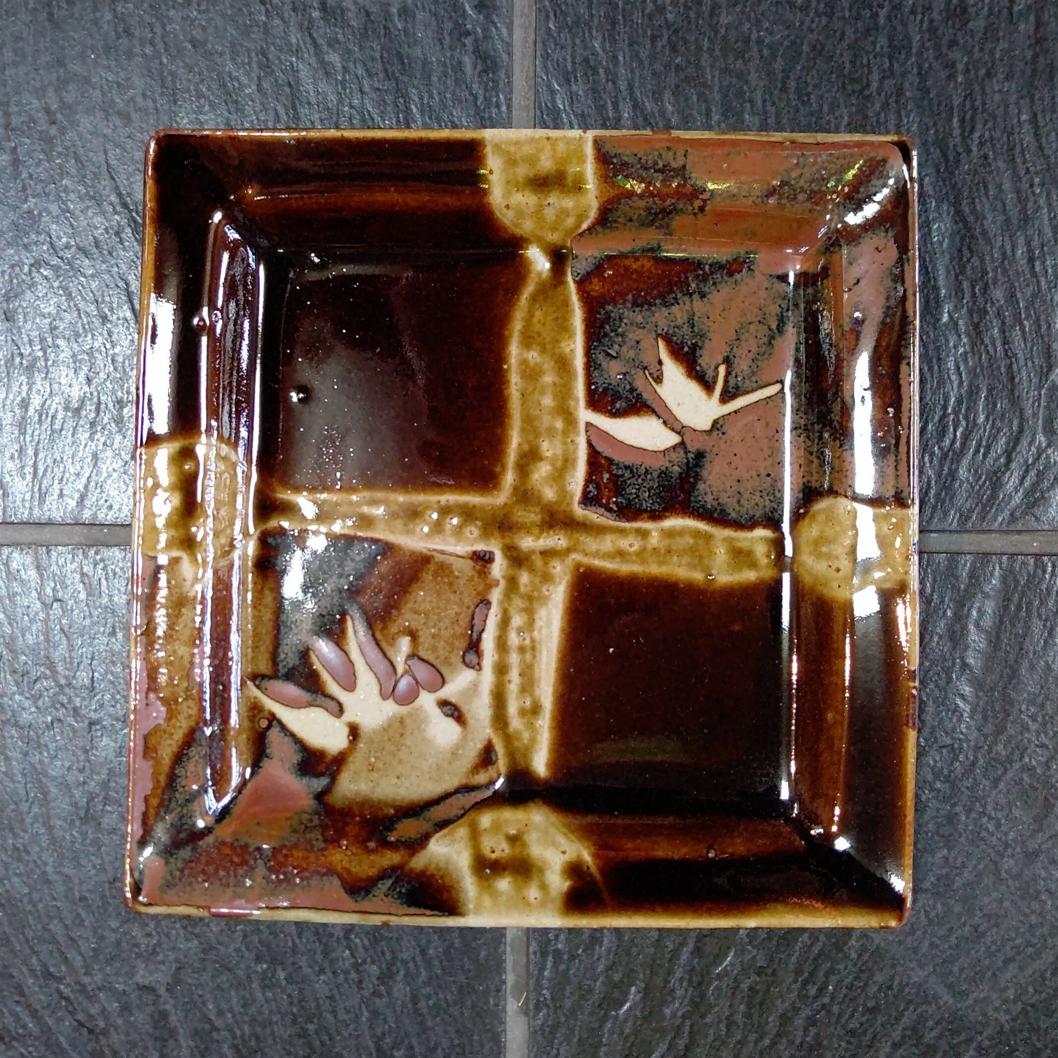 抜蝋笹紋角皿 益子焼 佐久間藤太郎