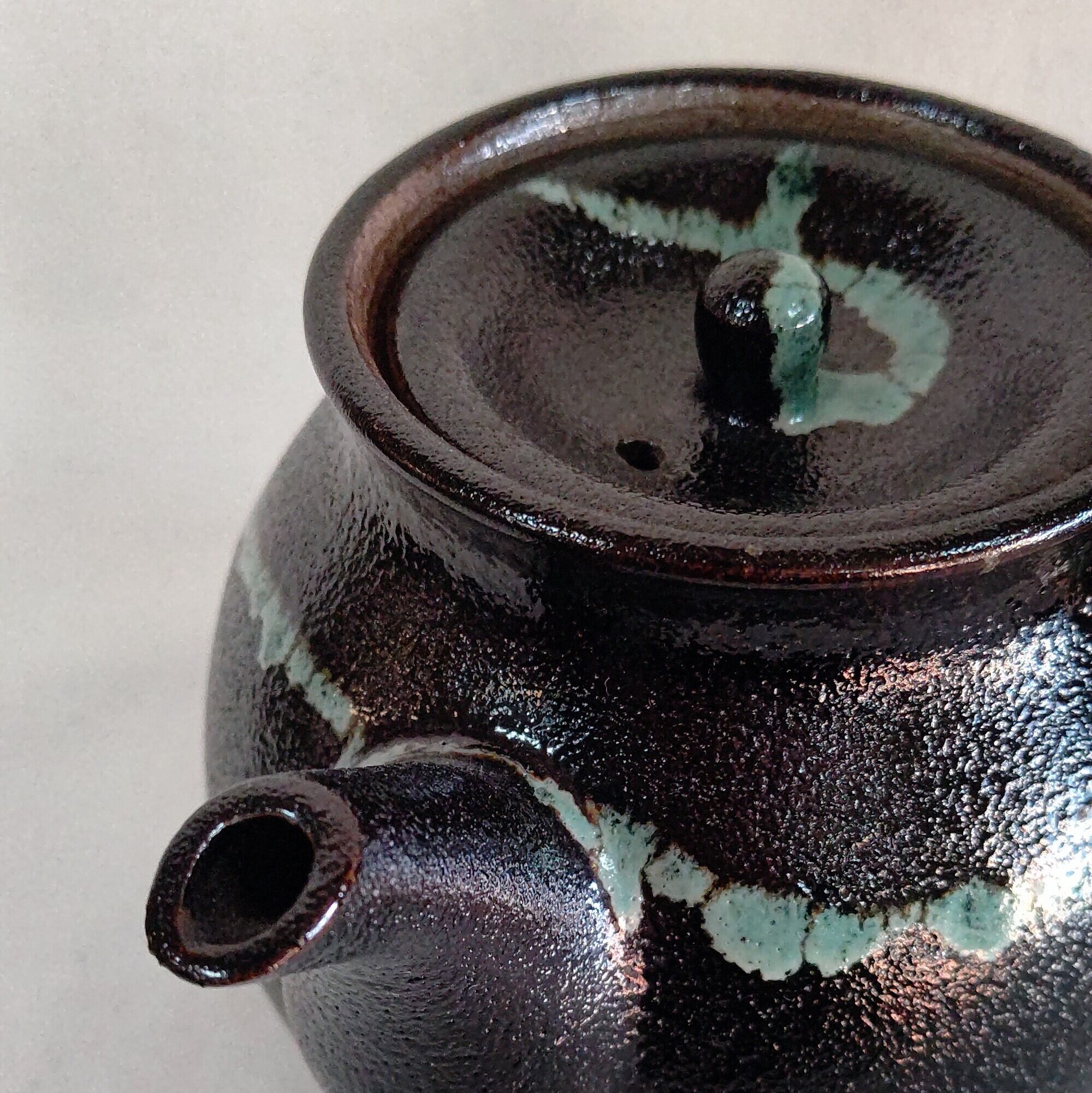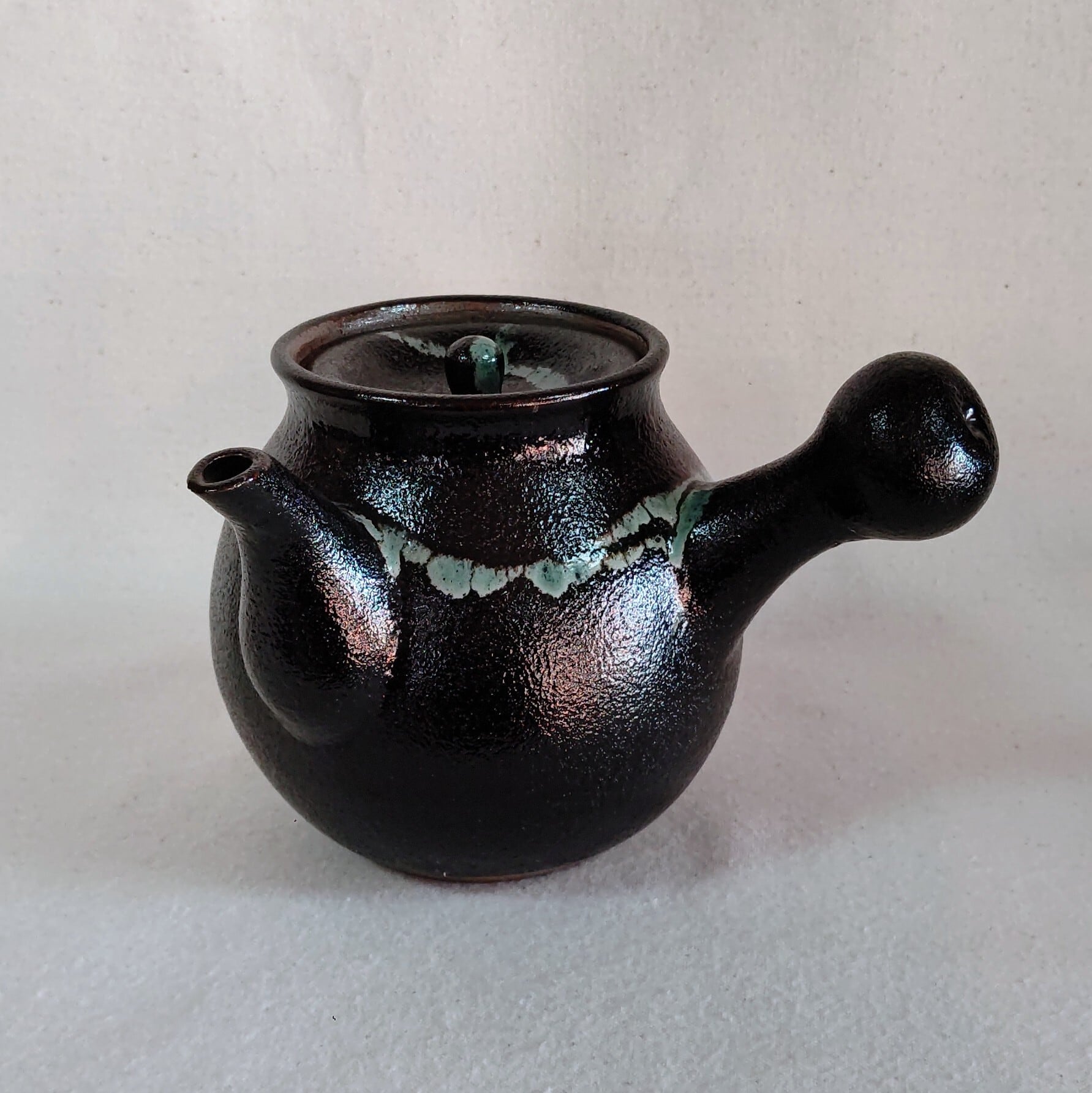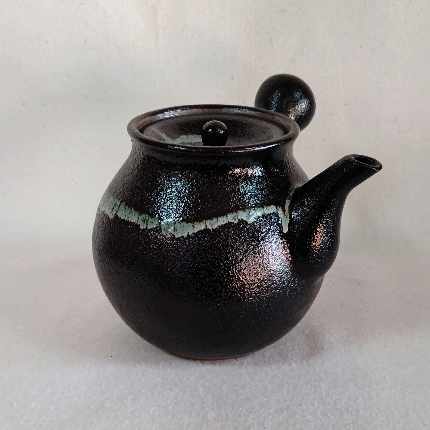 黒釉青流急須 龍門司焼