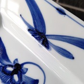 砥部焼 梅山窯(愛媛)の古作の7寸角皿になります。